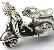 ベスパモチーフのこだわりスクーター。前後のタイヤ部分が可動式で回転します! |