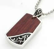 唐草模様が彫りこまれたプレートにウッドをはめ込んだ |