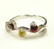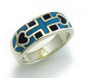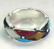 ヒシ型にカットした貝や天然石を贅沢に埋め込んだマルチカラーリング。