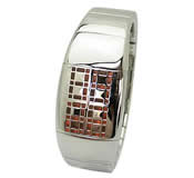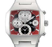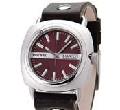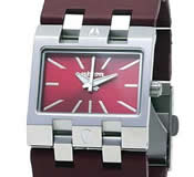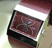 四角いフェイスが存在感をアピール。ワインレッドのレザーベルトはどんなシーンにも似合いそう!