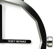 ISSEY MIYAKEと深澤直人のコラボ。針の中心軸の径と同じ太さの時分計がシンプルで機能的なデザインを際立たせる。