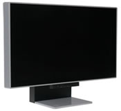 22V型なのにコンパクト、それは外装を狭くデザインしたから。スピーカーをスタンドの中に入れた「画面だけのテレビ」、どんな生活にも溶け込みます。