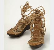 長めの紐を足首に巻きつけて履く注目のストリングタイプ。