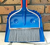 ニコニコ笑顔とヒゲおじさん。ひとつで2人分の顔を持つユニークなデザインの塵取りとホウキ。