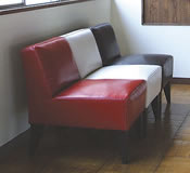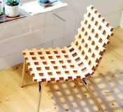 一枚の板を折り曲げて背と座をつくりだしたようなデザイン。 |