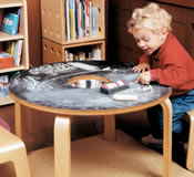 黒板がそのままテーブルになってしまった、ドーナツ型のかわいらしいデザイン。デザイナー自身の子供時代を反映した作品。 |