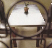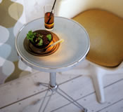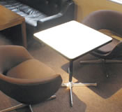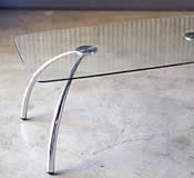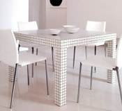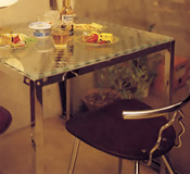 クロームの脚にチェック模様の天板というアバンギャルドな印象。シンプルなので、合わせる椅子はちょっと変わったデザインでも面白い。 |