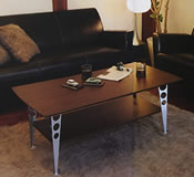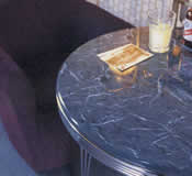 大理石柄の天板にクロームの縁がついたテーブル。ちょっと重厚ぽく、でも脚のフォルムはシャープ、大人の部屋作りにピッタリ。 |