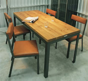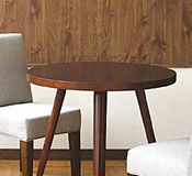 脚に空いた3つの穴がポイント。木目調の天板に脚部をスチール素材にすることによって、軽くそしてモダンな仕上がりに。 |