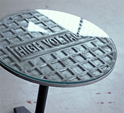 鉄の鋳物工場の片隅で見つけた何種類かのマンホールの鋳型。そこにアルミを流し込んで出来上がっのがこのマンホールの天板。 |