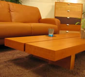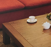 ソファにつけると肘のすぐ横に天板がくるので、ちょっとした飲み物などを置くのにぴったりです。 |