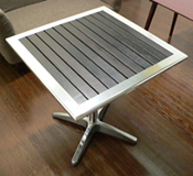 アルミ×ウッドトップの素材感は本当にクール。肝心の杢はオイルステインのような味のある仕上げになっています。 |