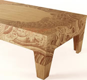 刺青を入れられた力強いボディ。テーブルを生身の体、皮膚と捉えています。とは言っても、もちろんデジタルプリント。 |