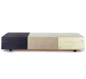 TV台にもできるように真ん中に配線用の穴が空いておりビデオデッキ等の電化製品を表に出さずスッキリとしまうことができる。 |