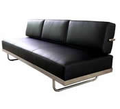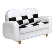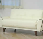 3段ギアにて背もたれを倒してベッドにもなります。お手入れが楽なPVC張りで木脚付でかっこいいです。 |