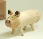 なんともいえないとぼけた表情が可愛いブタのスパイスケース。一見木の置物と思いきや、実は鼻からスパイスが出てきたりするのであった!
