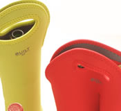 ウェットスーツなどに使われるネオプレーン素材をキュートに仕上げて、ルックスは遊び心イッパイながら、大切なボトルを守り、保温または保冷してくれるというスグレモノです。